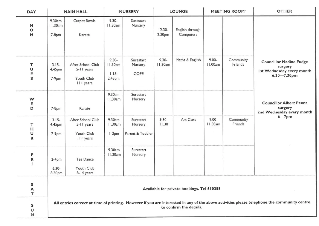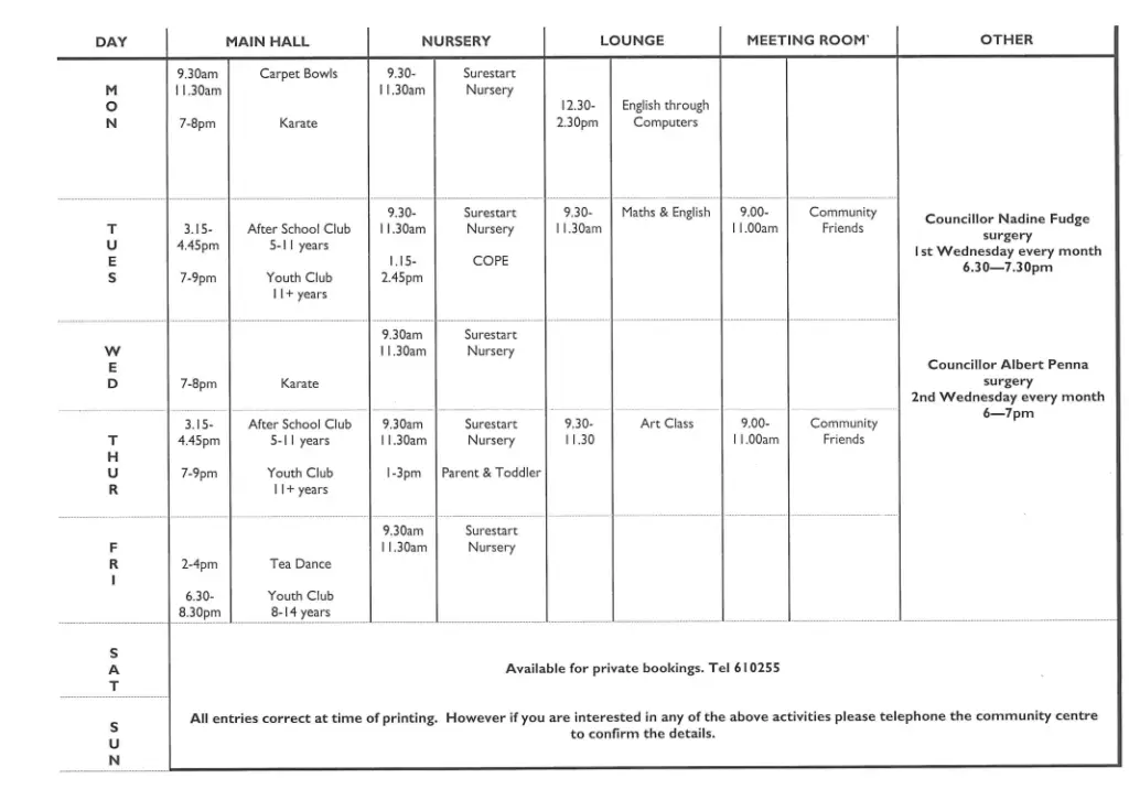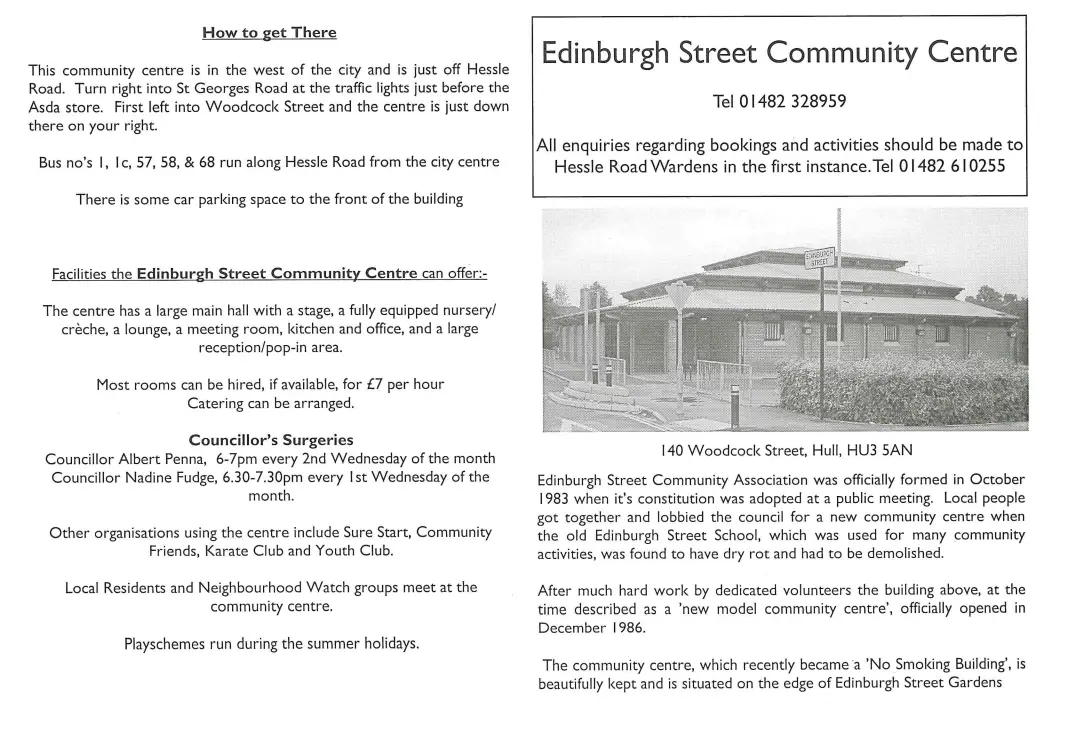NewslettersEdinburgh Street Mural booklet1998 Edinburgh St. C.C. Activities1997-8 Edinburgh St C.C. Annual ReportCommittee minutes 21st Nov 19841999 Jan. Edinburgh St newsletter1993 Sept. Edinburgh St newsletter1989 Edinburgh St Annual report1986 13th Dec. Edinburgh St Official opening