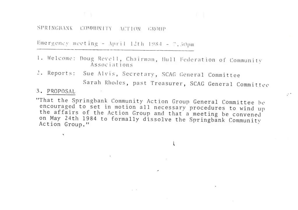 SBCAG Newsletter -closingSBCAG ltr from Bob Finch 18th April 1985Spring Bank Community Action Group Sue AlvisSBCAG Parish PowerSBCAG Newsletter March 1982SBCAG Annual report cover 82-83SBCAG Annual Report 82-83SBCAG news letter Nov-Dec 1981