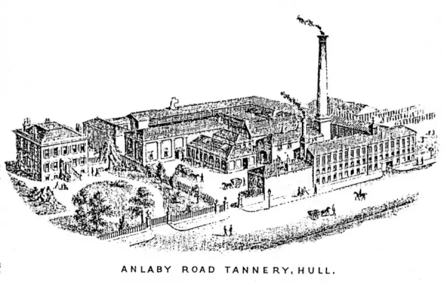 “One of the most perfect establishments of its kind is the Anlaby Road Tannery, which has, like many other places of business in Hull, been rebuilt and very much extended. Its owners (Messrs Thomas Holmes & Son) are the tanners and manufacturers of the famous patent walrus and hide leather strapping, now used in the principal works in the kingdom, in which very powerful straps are necessary. There are two or three smaller tanneries.”