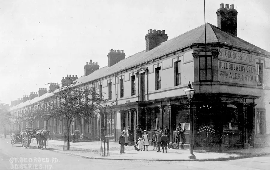 St George’s Road was laid out in the late 1870s, and listed an 1879 trade directory almost completely occupied at this north end. Running south to connect with the Hessle Road, it is one of the longer thoroughfares on the Anlaby Road, and has many streets and terraces running off each side. The name was a statement of British patriotism, at a time when the British Empire was at its peak.